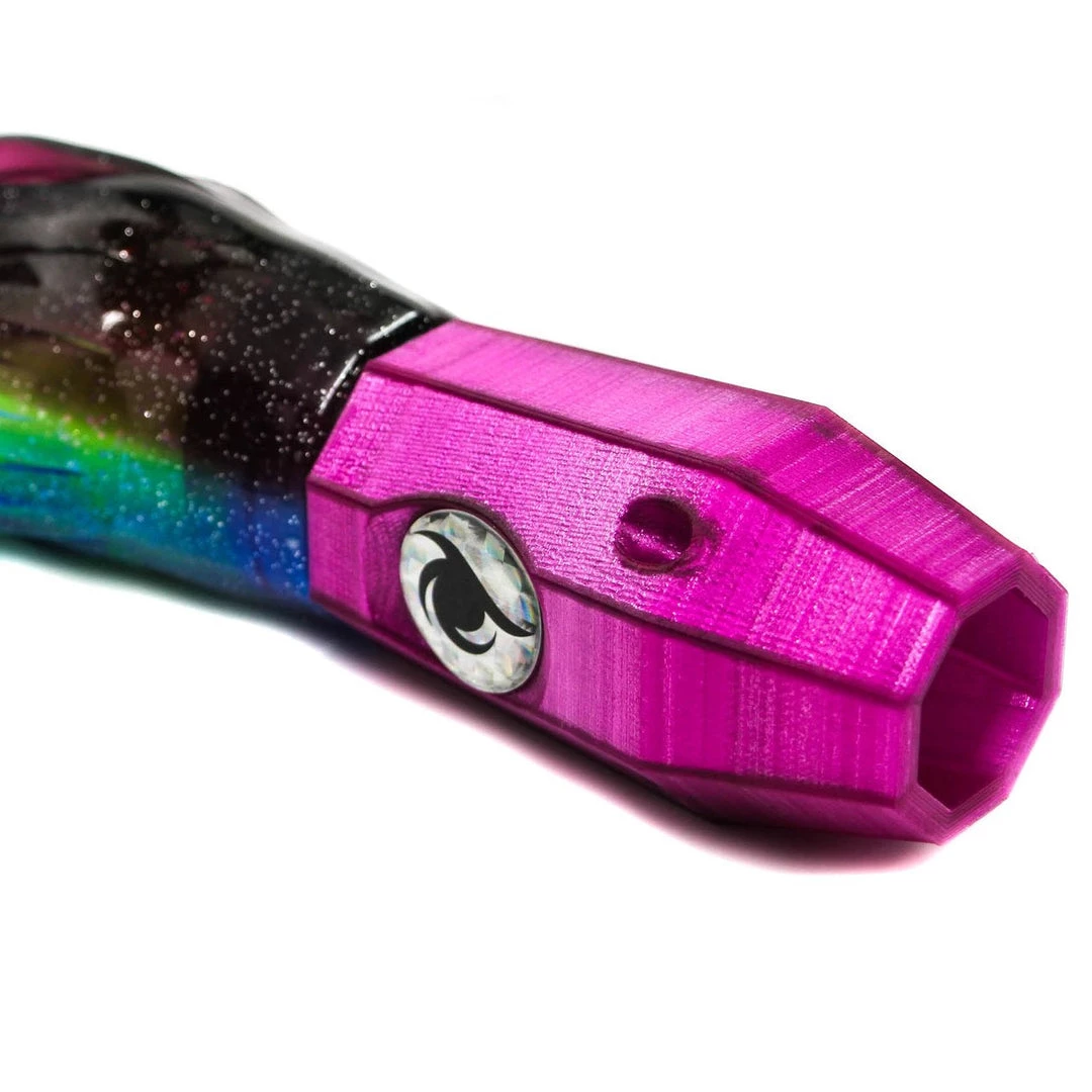 The Octojet is the original design that the Octovent is based off. This lure is only available in S3 size. The Octojet has the shape of a hollow point bullet and 8 distinct sides. It slices through the water like a bullet and the hollow face and jets give it a darting bubble trail action. Can be fished in a variety of water conditions and at various speeds. We have seen marlin, tuna, and bull mahi caught on this lure. Hook size 7/0