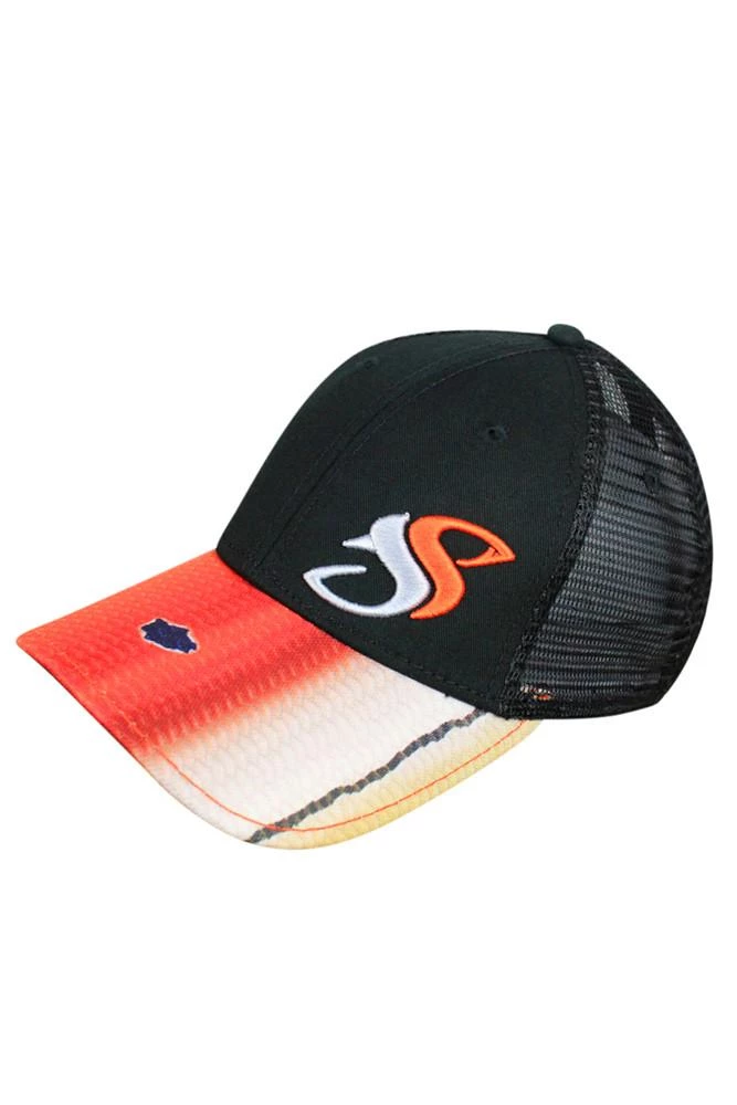 Love inshore fishing? Now you can sport your favorite species while on the water pursuing them, the inshore SS trucker cap features dye sublimated snook, redfish and trout scales on the bill. Protect yourself from the sun while looking “reel” good!