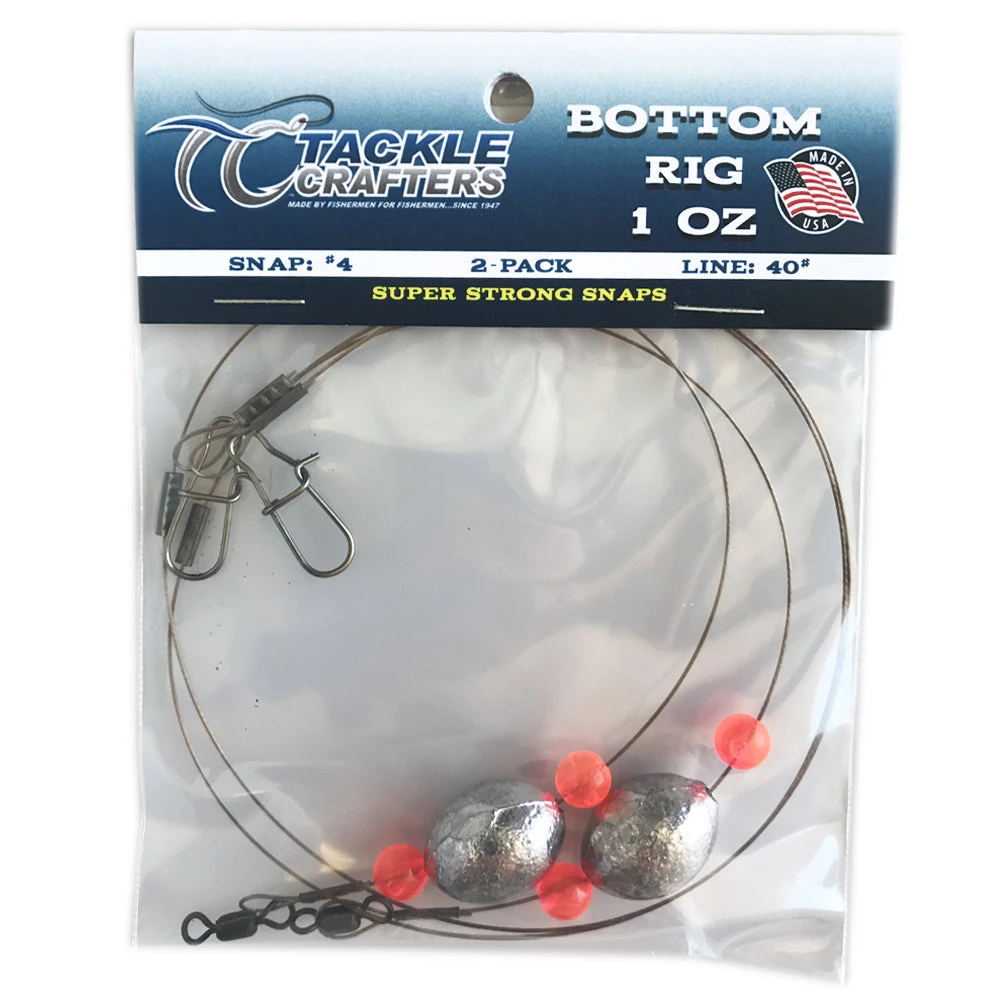 - Tackle Crafters Bottom Rigs feature 40lb surfstrand from AFW and #4 duo-lock snaps.