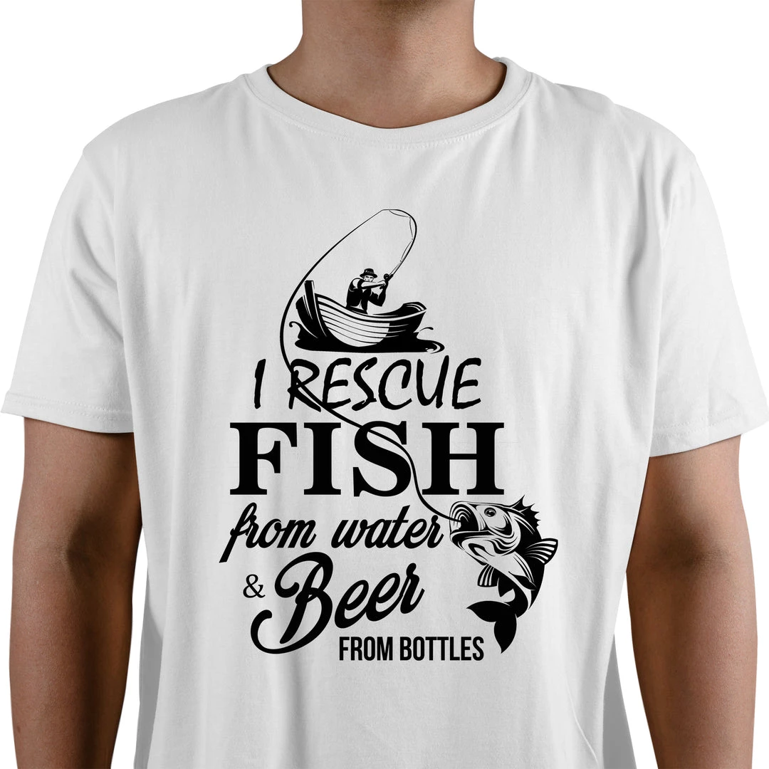 Thefishingshop I Rescue Fish From Water And Beer From Bottles Men’s T-Shirt Casual Wear