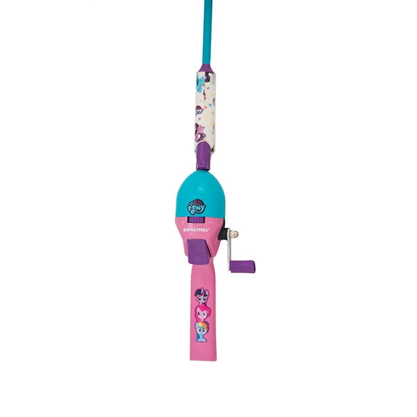 The My Little Pony No Tangle Combo comes equipped with a 34″ inline rod and reel combo, plastic casting plug, rattle bobber, and a pre-tied snap swivel. The reel has a 3.3:1 gear ratio and comes equipped with 6lb line. Expect a perfect Tangle-FREE cast time after time! Perfect for teaching kids how to fish and truly a parent’s dream come true!